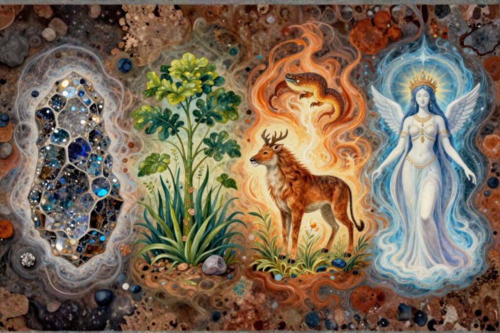 肉体の下には四大元素(火・水・風・土)があり、さらにその下に金属があります。